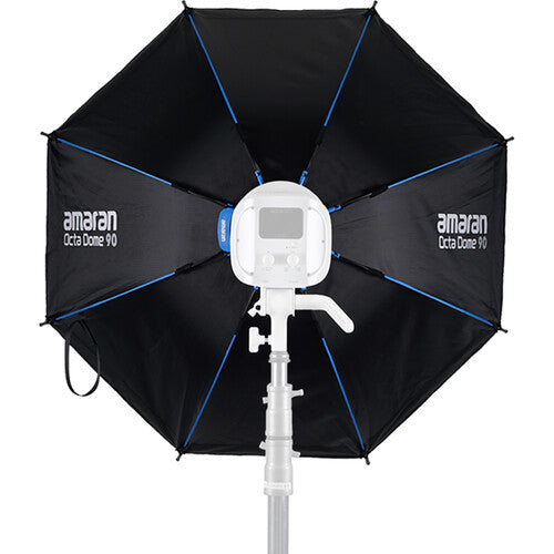 The amaran Octa Dome 90 softbox is a fast, efficient lighting tool designed for photographers and content creators who need a natural-looking light source with minimal setup time. Its large octagonal shape closely mimics natural sunlight, producing a smooth, evenly diffused glow that enhances skin tones and textures while creating soft, rounded catchlights in the eyes. Built with a one-snap setup mechanism, it expands instantly with a simple pull of the speed ring handle, eliminating the hassle of complex assembly and breakdown. The slim, collapsible design makes it easy to store and transport, making it ideal for both studio and on-location shoots where space and time are limited.
