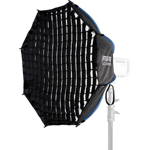 Designed for compatibility with amaran COBs and other Bowens-mount fixtures up to 600W, this modifier delivers flexibility for various lighting setups. The included diffusion layers help soften harsh light, while the optional grid allows for precise control over contrast and directionality. Everything needed for a complete lighting setup—softbox, diffusion fabrics, grid, and carry bag—comes neatly packed for convenience. Whether crafting cinematic interviews, professional portraits, or creative studio work, this softbox offers a perfect balance of efficiency, portability, and high-quality illumination.