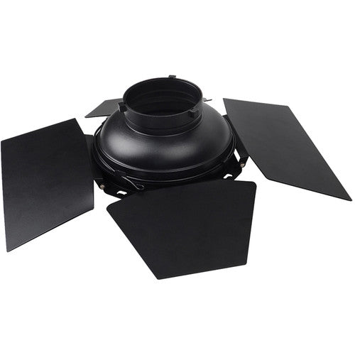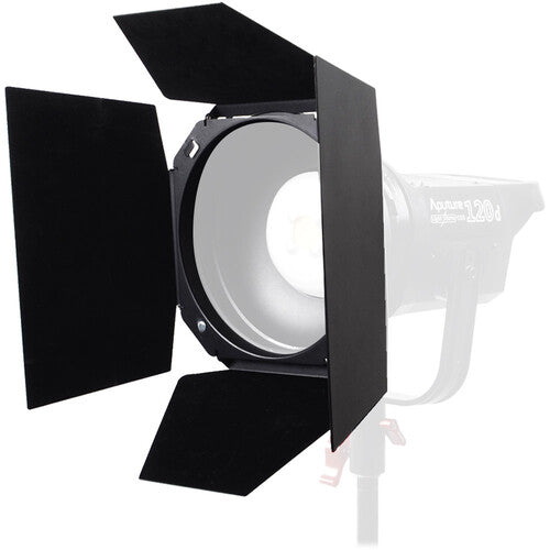 The Barndoors, Grid, and Gel Holder for LS 120d/II and LS 300d/II LED Lights are light modifiers that fit the reflector that comes with all versions of these Aputure LED lights. The 4-way barndoor design allows for one to four of the leaves to be swung into the light's beam to illuminate areas that you want while keeping light from areas where you don't want it. The 30-degree grid narrows the beam spread. The barndoors also include a magnetic gel holder that allows filmmakers to easily add color to their lights' output. This light modifier set does not include the reflector.
