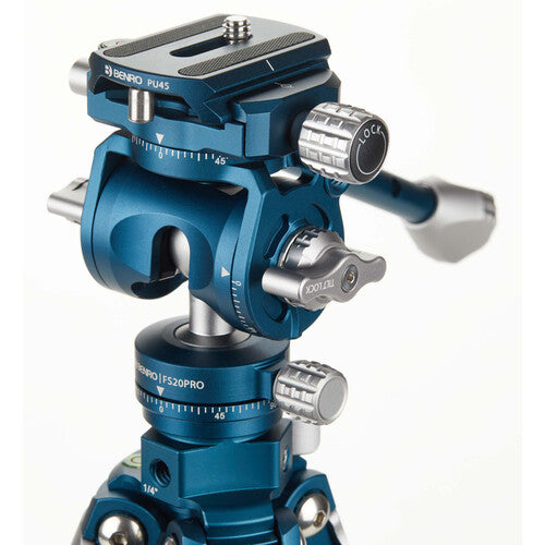 The CyanBird Carbon Fiber Tripod with FS20PRO 2-in-1 Pan Head from Benro is a travel-friendly tripod that can go wherever your creativity takes you. Boasting a sleek ocean blue design, this lightweight and versatile tripod is perfect for photo, video, and content creation. It has a load capacity of 9.92 lb and extends to a height of 50.8", yet easily folds down to just 17.3", making it a great fit for any backpack or camera bag. The lightweight carbon fiber legs feature a flatter shape than traditional round legs to provide rigidity while reducing size.