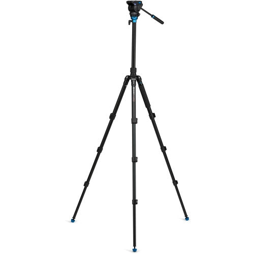 The Aero 4 Video Travel Angel Tripod Kit from Benro combines a removable flat base video head and 3-stage aluminum tripod legs. The system has a maximum height of 65.2" with the center column extended and features a reverse folding leg design for a storage length of only 21.7". Supporting loads up to 8.8 pounds, the video head offers separate pan and tilt controls for smooth and precise camera movements. For increased versatility, one of the tripod legs is removable and can be combined with the center column to turn the system into a monopod when needed. A padded carry case and strap come included.