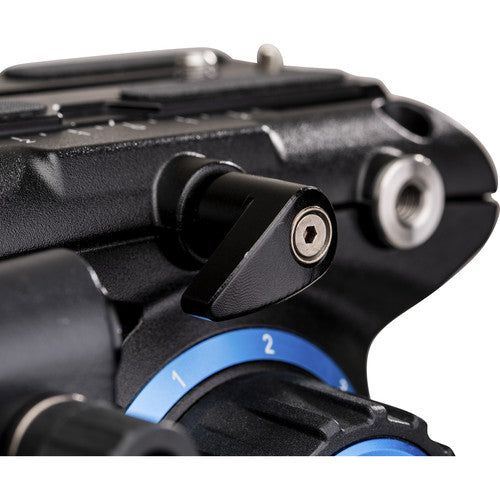Some parts of the head are made of magnesium and other parts of aluminum. Virtually the entire head, including its knobs, is made of robust yet lightweight metal. A pan bar is included that can be attached to a rosette adapter on the left or right side of the head, for left- or right-handed users. A camera plate is included that can be adjusted forward/backward to let you find the optimal balance for your camera. A safety lock on the plate ensures that once mounted, the plate won't slip out if you move it in either direction too much. Two camera screws are supplied—1/4"-20 and 3/8"-16—that can be stored underneath the camera plate on the head itself, in dedicated slots. For attaching accessories, there's a 1/4"-20 threaded hole on each side of the head to which you can secure articulating arms.