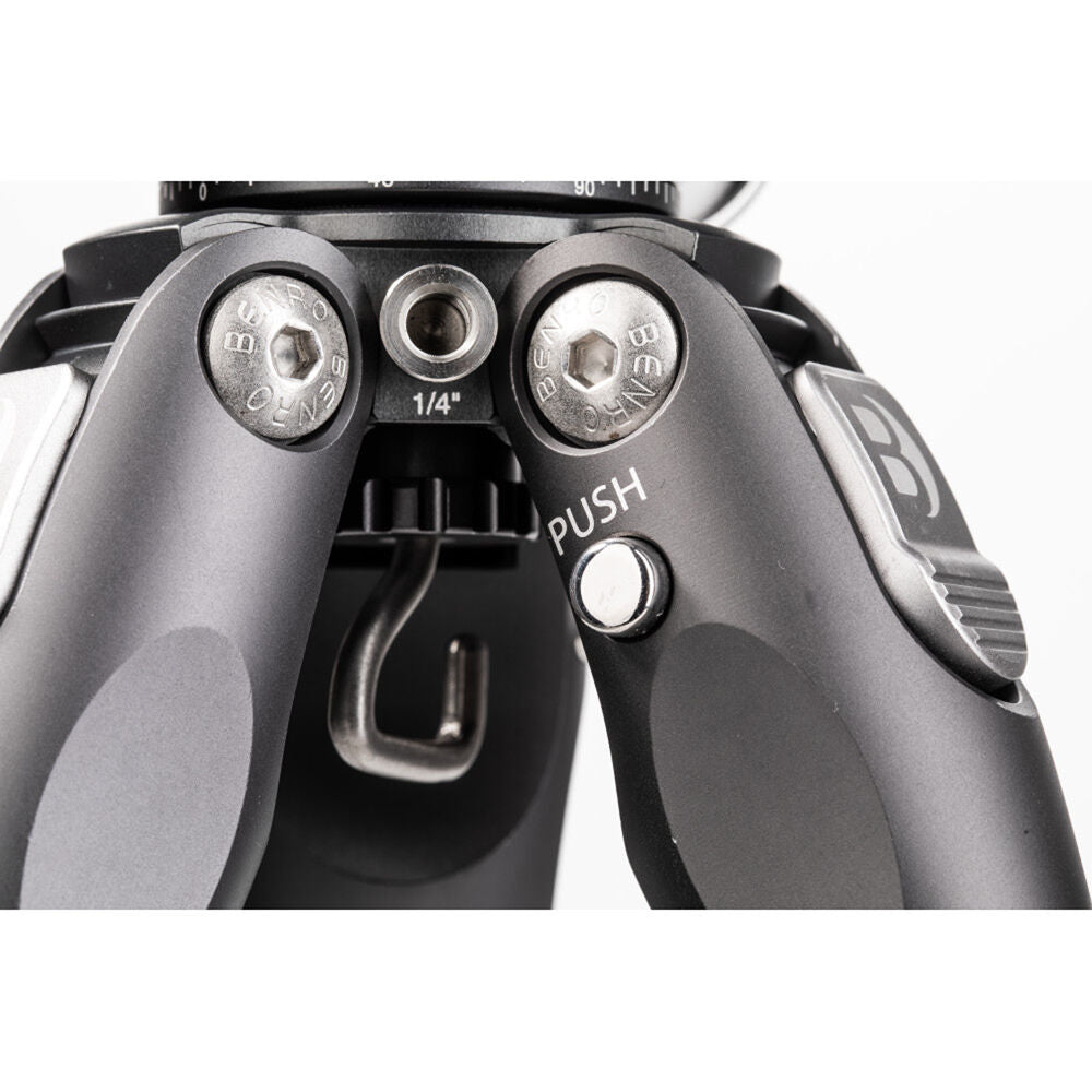 The small yet mighty Tortoise Columnless Carbon Fiber One Series Tripod with GX25 Ball Head from Benro is a compact, lightweight travel tripod with a high load capacity and remarkable stability. The center column-free design makes it nimble and lightweight for travel and reduces the potential for shake common to high center column positioning. This is especially significant when shooting video content. The legs offer independent spread and three locking positions and incorporate automatic leg angle adjustment for fast and sure setup. The aluminum leg spider features a 1/4"-20 accessory mounts for extension arms, monitors, lights, and more. The rubber feet feature three distinct contact surface providing a grip whether the legs are vertical, on an angle, or nearly horizontal when positioned.