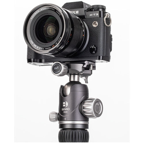 Featuring an elegant and minimalistic design with an excellent strength to weight ratio, the VX25 Two Series Arca-Type Aluminum Ball Head from Benro offers dual panoramic mode, which allows you to pan the head from its base in addition to the quick release platform. The controls are simple, with ball friction adjustments built into the main locking knob and an independent pan lock. This newly designed ball head features a safety lock for the quick release plate, and the included bubble level enables you to accurately level out your shot.
