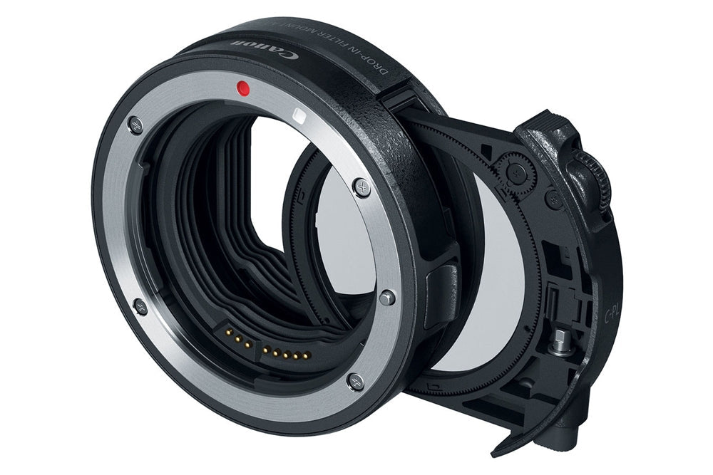 Extending the range of compatible lenses, this Canon Drop-In Filter Mount Adapter EF-EOS R is a unique lens adapter designed for attaching any EF or EF-S-mount lens to the EOS R mirrorless digital camera. This sophisticated adapter affords compatibility with select A-type drop-in filters, and includes a circular polarizer filter to help increase saturation and contrast and reduce reflections.