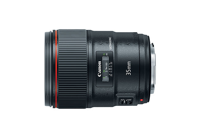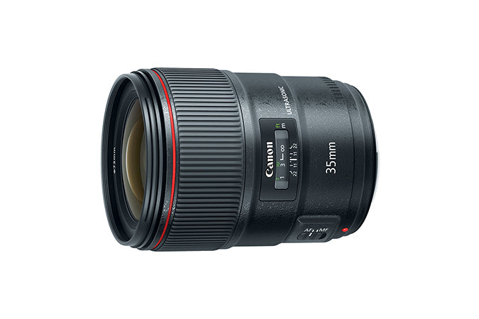 The EF 35mm f/1.4L II USM from Canon is an L-series prime wide-angle lens featuring Blue Spectrum Refractive Optics and a maximum aperture of f/1.4, making it ideal for shooting in low-light situations and for controlling depth of field. Two aspherical elements and one Ultra Low Dispersion (UD) element combine with the BR element to control chromatic aberrations and color fringing for increased clarity and sharpness. A Subwavelength Coating has also been applied to reduce ghosting and lens flare for greater color accuracy and contrast. The Ultrasonic autofocus motor (USM) provides fast and near-silent AF operation. Full time manual focus override enables precise manual focus even when in AF mode.