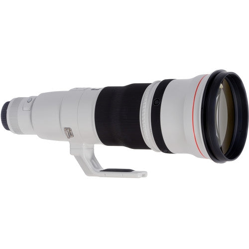 Dust and water sealing keeps the lens functioning even in less than ideal conditions and magnesium and titanium construction elements make it 3 lb lighter than its predecessor. Fluorine coating on the front and rear lens surfaces allows dirt to be removed easily and an attachment slot is provided for a wire-type security lock. The EF 600mm f/4L is compatible with Canon's EF1.4x III and EF2x III extenders and this lens includes a lens hood, a 52mm drop-in gelatin filter holder, a detachable tripod collar and a hard travel case.