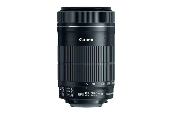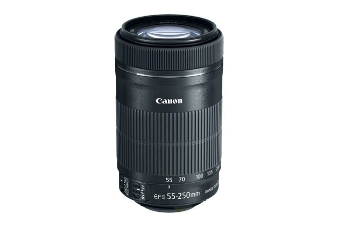 Suitable for distant subject matter, the EF-S 55-250mm f/4-5.6 IS STM is an 88-400mm-equivalent zoom for Canon APS-C DSLRs. This lens's long reach is enhanced by the inclusion of an Ultra-Low Dispersion element, which helps to greatly reduce color fringing and chromatic aberrations for greater clarity and color accuracy throughout the zoom range. A Super Spectra coating is also featured, and minimizes flare and ghosting in order to produce greater contrast when working in bright lighting conditions. Benefitting both photo and video applications, an STM stepping AF motor is used to realize quick and near-silent autofocus performance along with full-time manual focus override. Additionally, a four-stop-effective Image Stabilizer system is also featured and minimizes the appearance of camera shake for sharper handheld shooting.