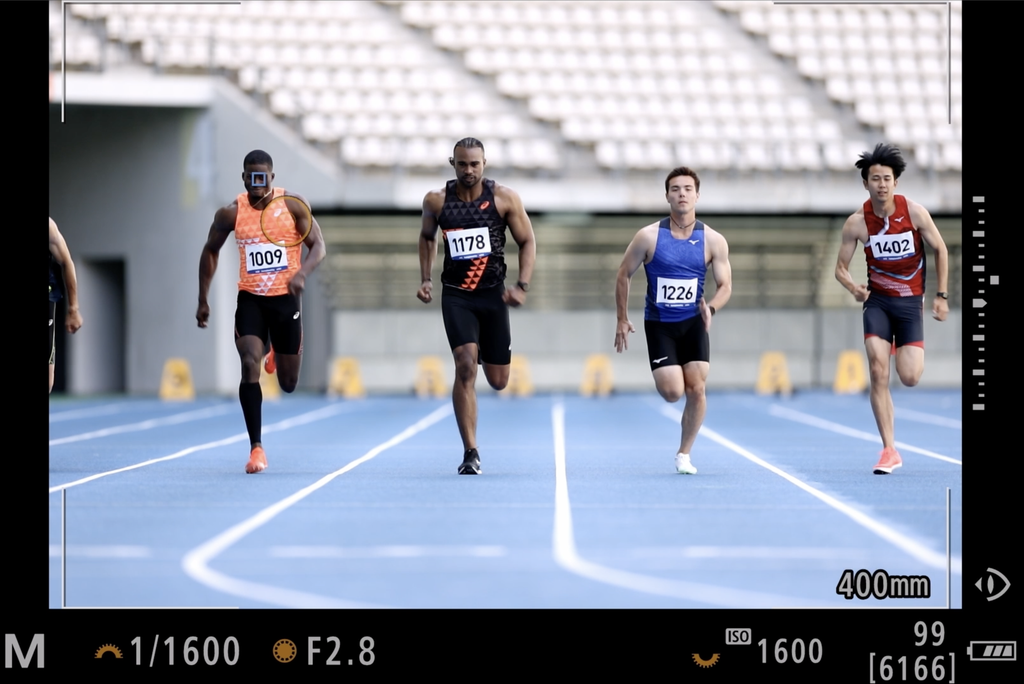 Thanks again to the increased camera processing power of the DIGIC Accelerator chip, we have developed a new AF mode called Action priority. This new focusing technology recognizes specific subject movements in selected sports, and automatically moves AF points to a player performing that motion — taking a shot, passing a ball, and so on. According to movement and other factors, it simplifies finding and keeping an active AF Area upon a subject about to perform a critical action, and it can really help getting great sports pictures! This feature works with three sports at the moment, soccer, volleyball, and basketball. With Action priority the camera can recognize and track specific people, and takes into account ball tracking, movement evaluation, and even multiple subjects in a scene at the same time, to help ensure you get the action shot you want when everything is moving so fast in front of your eyes. This Action Priority mode takes on even more power when you pair it with pre-continuous shooting. When enabled, pressing the shutter button halfway will start the pre-recording process, when you fully depress the shutter, the previous 1/2 -second of images will be written to the memory card (so up to 20 if the R1 is shooting at 40 fps), and will continue capturing images until you release the shutter button.