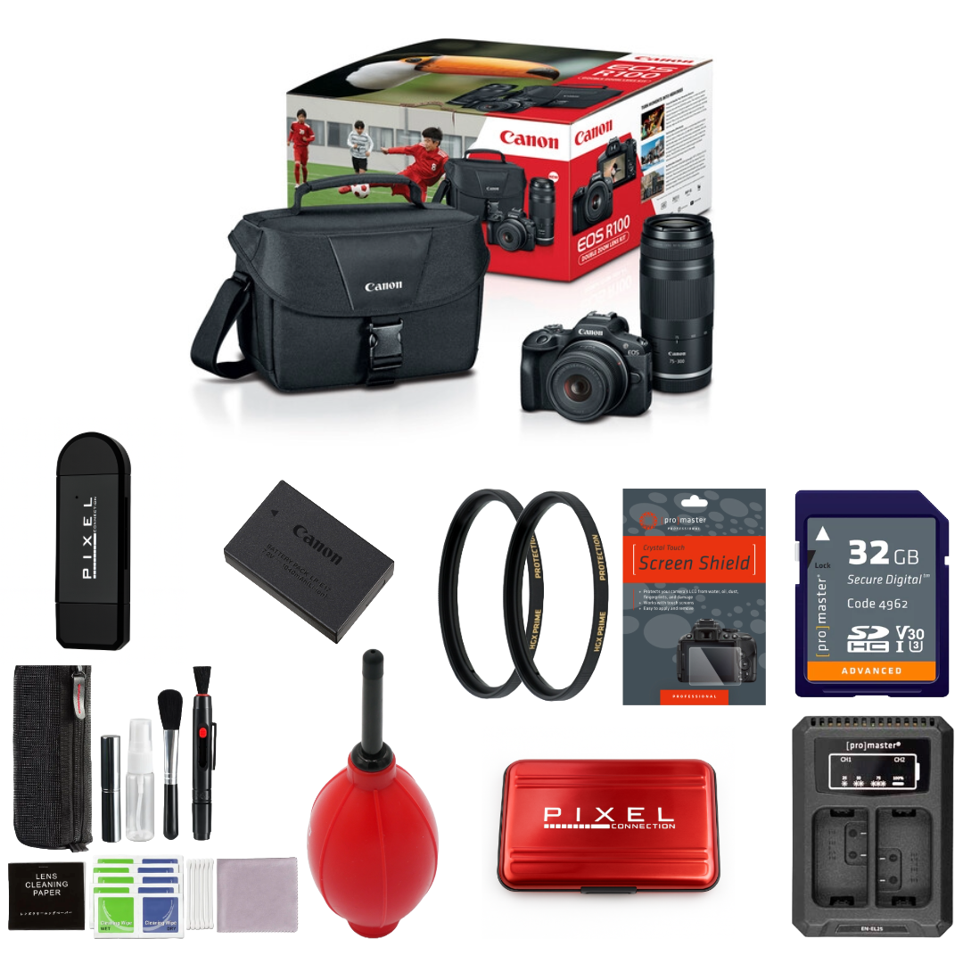 Compact, lightweight, and ready for on-the-go content creation, the Canon EOS R100 Mirrorless Camera is built for aspiring photographers, filmmakers, and content creators. It delivers impressive image quality with a 24.1MP APS-C CMOS sensor and DIGIC 8 processor, while also supporting cropped 4K video at 24p and Full HD recording.