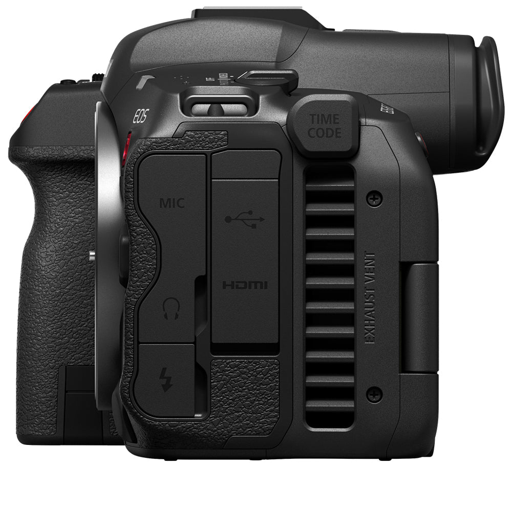 The EOS R5 C camera provides a Timecode input/output terminal for easy synchronization when shooting with multiple cameras and other interfaces. A cable protector is also included as standard to prevent cable disconnection or damage to the terminal if strong force is applied when connecting interface or HDMI cables.