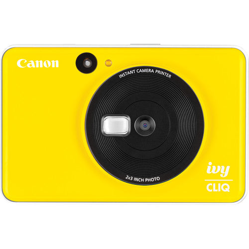 A pocketable camera and a sleek, portable printer in one, the bumblebee yellow Canon IVY CLIQ combines the fun of producing prints on the fly with the convenience of digital image capture. This compact instant camera printer utilizes ZINK technology to deliver 2 x 3" prints along with a 5MP image sensor and wide-angle lens for versatile shooting capabilities. Autofocus and auto-exposure lend true point-and-shoot functionality and the camera's design incorporates a flash for low-light situations. To benefit selfie shooting, a selfie mirror is placed on the lens for aligning your self-portraits. The camera also incorporates an optical viewfinder, a microSD memory card slot, and has a built-in lithium-polymer battery.