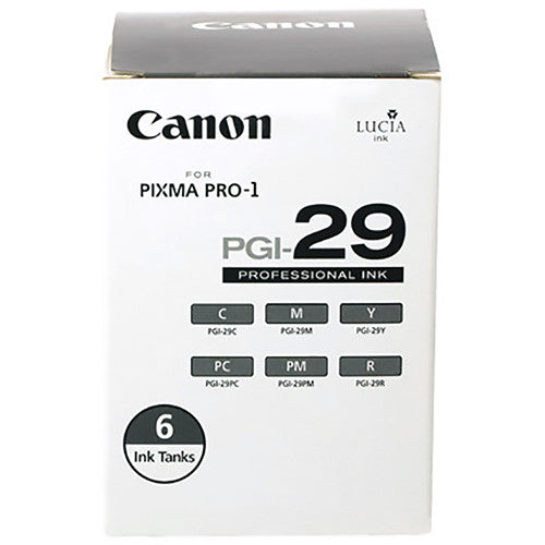 Stock up on ink for your PIXMA PRO-1 printer with this PGI-29 Six-Color Ink Cartridge Set from Canon, which includes one cartridge of each of the following colors: