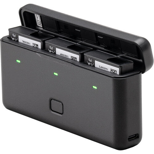 Store and charge up to three batteries for your Osmo Action 3 or Osmo Action 4 camera with this Multifunctional Battery Case from DJI. The case stores three batteries and can also fast charge them simultaneously. The case can be powered by an external power source via its USB-C port, and it can also act as a power bank to power other devices via that same port. The case even stores two microSD cards to keep them safe and protected.