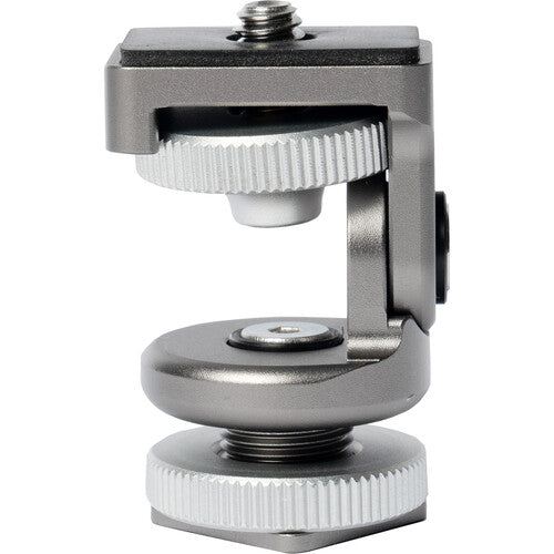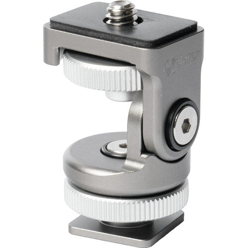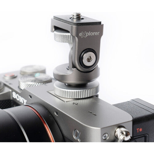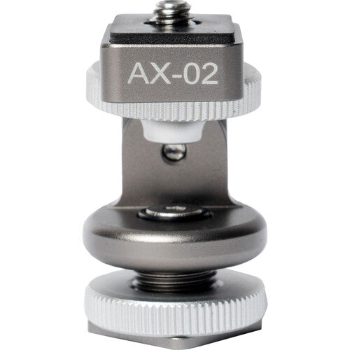 The Explorer AX-02 Aura Explorer Mini Tilt-Head is a shoe mount designed to be used with hot or cold shoes allowing accessories such as LED light panels, microphones, and more to be mounted to a camera, video setup, quick release plate, or a small tabletop tripod. The Explorer AX-02 Aura Explorer Mini Tilt-Head has a max load capacity of 2kg (4.4lbs) and includes a 1/4″ bottom mount crew thread in addition to the shoe mount. The AX-02 allows the mounting accessory to tilt up and down with friction adjustments made according to weight load with the included hex key wrench. The Explorer Mini Tilt-Head is very lightweight at only 36g and is made with a high-quality aluminum alloy construction with an anodized finish for durability.