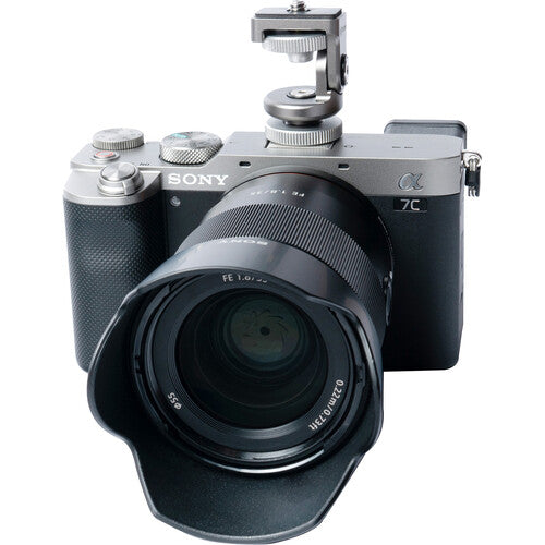 To attach to a camera, slide the foot into the hot shoe and tighten the silver lock. Use the top silver lock to mount the accessory and check the tilt dampening suits the accessory’s weight. Use the included hex key wrench to adjust damping according to load weight.