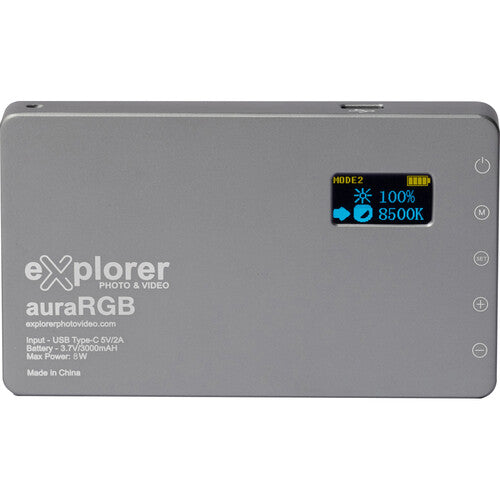 The Explorer AX-RGB AuraRGB is a lightweight, compact and bright LED photography and videography RGB light. With 8 different modes, including Orange light, Color temperature, RGB color, Lava lamp, Lightning flash, Warning light, and Creative scene mode, the AX-RGB creates many settings to get creative. The LED features a frosted surface that outputs soft, even light, with precision adjustments for power output and creative presets under each mode.