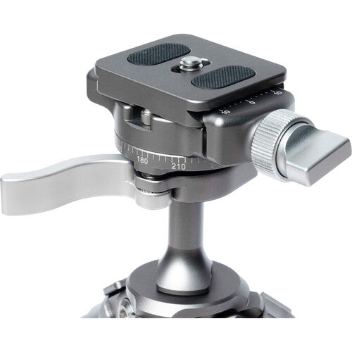 The Explorer GX-01 Gravity Explorer Ball Head is designed to be as compact and portable as possible while supporting up to 5kg (11lbs)of gear on an ARCA compatible mounting clamp. A dual-action knob secures the provided Explorer EX-37 quick release plate and acts as the panning release to shoot 360° panoramic images. Quick adjustments to composition and positioning can be made through the inverted ball head design.