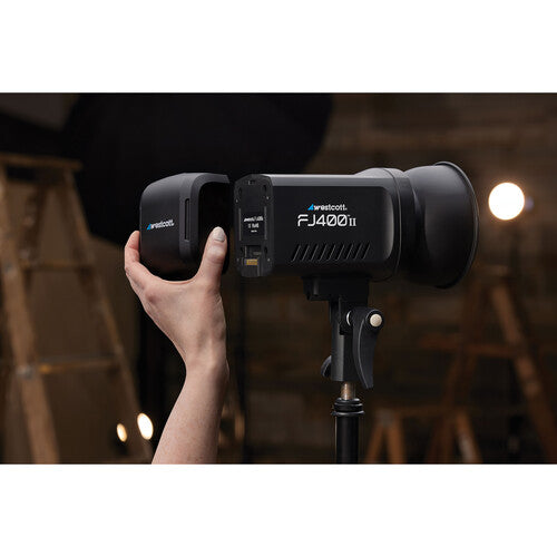 Designed for the FJ800 and FJ400 II touchscreen strobes, the FJ Pro Battery from Westcott is a 29.6V rechargeable battery that produces over 250 full power FJ800 flashes and over 550 full power FJ400 II flashes. Charge the 2500mAh battery to full power in approximately 1.5 hours and monitor its status with the LED charging status light indicator.