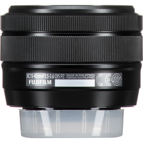 Sporting a sleek profile and a versatile focal length range, the black XC 15-45mm f/3.5-5.6 OIS PZ from FUJIFILM is a 23-69mm-equivalent zoom characterized by its compact, retractable design. The first power zoom lens in the X-series lineup, this lens allows for electronic zoom control for smooth focal length adjustments. It also features an optical image stabilization system that minimizes the appearance of camera shake by three stops for sharper handheld images. Complementing the handling assets, the optical design incorporates both aspherical and extra-low dispersion elements, to improve sharpness and clarity, and has a Super EBC coating that suppresses flare and ghosting in order to achieve greater contrast and color accuracy.