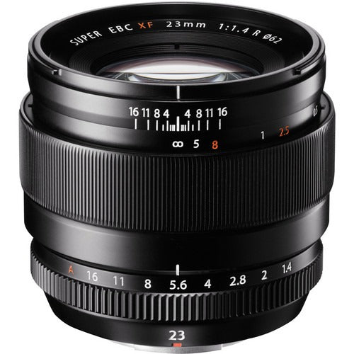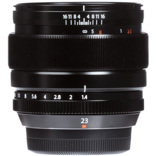 The Fujifilm XF 23mm f/1.4 R Lens is a prime wide-angle lens that provides a 35mm-equivalent focal length of 35mm, making it a suitable lens for everyday shooting. This all-around lens is further benefitted by the fast f/1.4 maximum aperture, which is especially useful in low-light conditions and for creating shallow depth of field and selective focus imagery. Also aiding in manual focus control are engraved camera-to-subject and depth of field scales on the barrel that help with setting the hyperfocal distance and pre-focusing techniques.