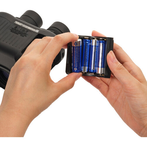 Fully multicoated optics and reverse-Porro prisms deliver a bright and crisp image with accurate color and vivid contrast, and the wide exit pupil and twist-up eyecups make the Techno-Stabi comfortable to use while wearing glasses and viewing through them for long periods of time. They will run for up to 18 hours on the four included AA batteries, or 22 hours with your NiMH rechargeables, and come with a case and a strap.