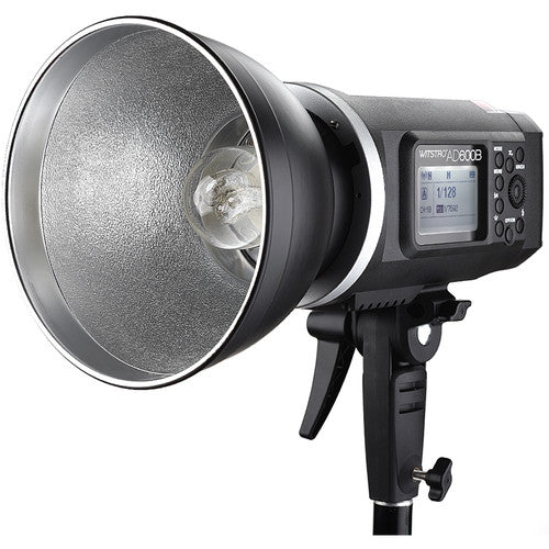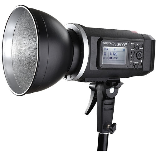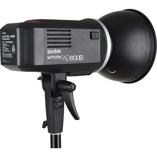 The AD600B features a high-speed sync mode that works with shutter speeds up to 1/8000 second to control background light intensity, and offers flash durations from 1/220 to 1/10,000 second for stopping action. Part of Godox's wireless system, the AD600B has an onboard 2.4 GHz X System that allows wireless triggering at distances up to 262' with the purchase of a Godox transmitter. The flash head has a Bowens-type front accessory mount that not only makes it compatible with Godox accessories, but also with light shapers from the many manufacturers that use this popular mount.