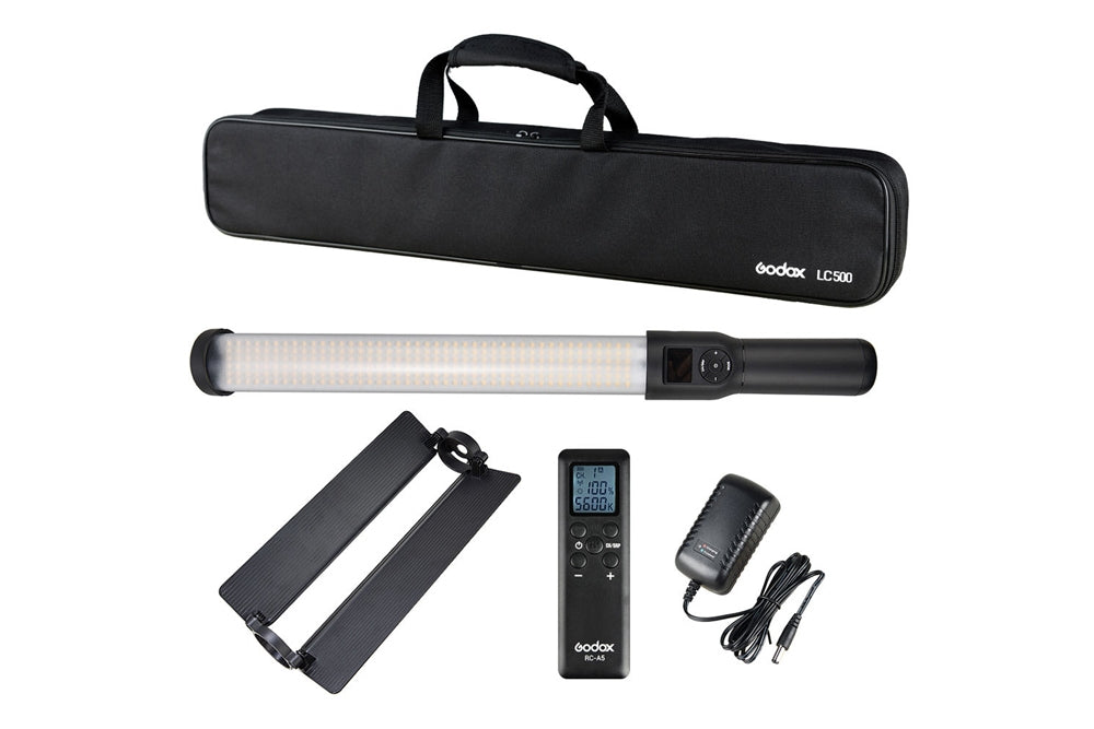 In The Box | Godox LED Light Stick LC500 2-Way Barndoors Wireless Remote Control Battery Charger Carry Bag Limited 1-Year Warranty |