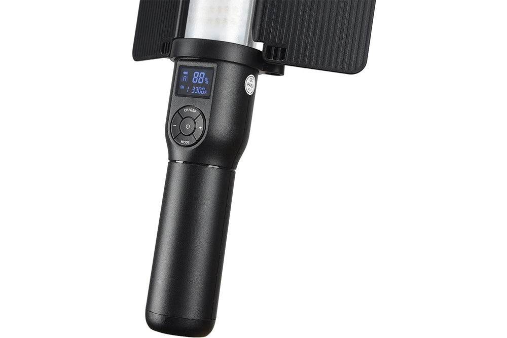 The Light Stick's handle makes it a shoe-in for hand-holding and use as a hairlight, side light, or main light for selective lighting and distinctive portraiture. Additionally, the female threads on the base of the handle allow stand-mounting and hands-free use. A wireless remote control with 16 channels and 6 groups is provided to make adjustments at a distance. The Light Stick has a built-in Li-ion battery that gets two hours of run time on a 2.5-hour charge. A padded carry case is furnished for storage and transport.