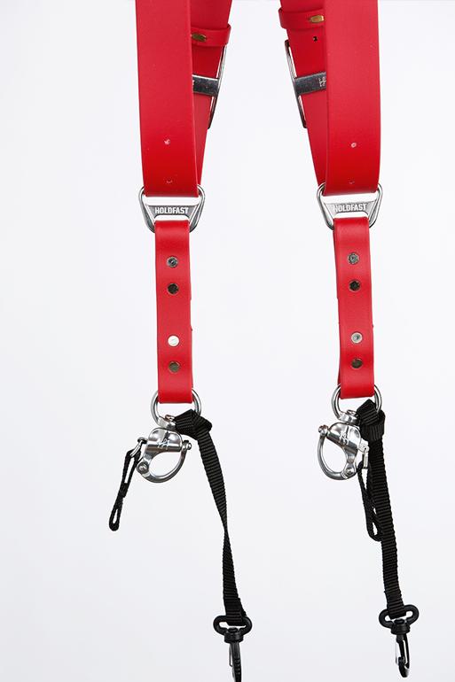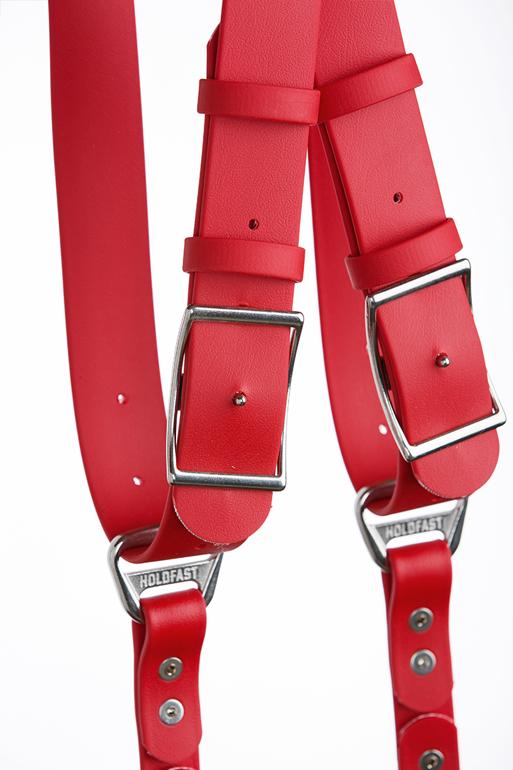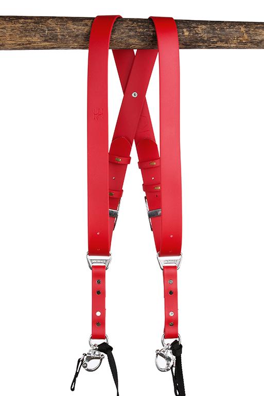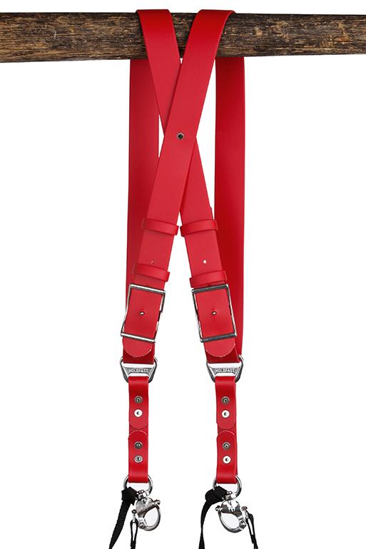 This is an all-weather, do it all camera strap. You get the same beautiful MoneyMaker design, same hardware, but in Vegan Leather. They come with everything you need to shoot with two cameras, including a pair of Camera Holdfasts and Safety Lanyards.