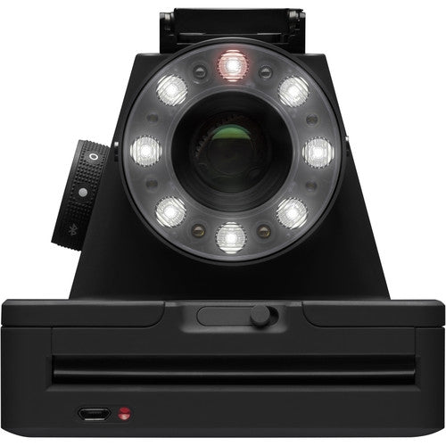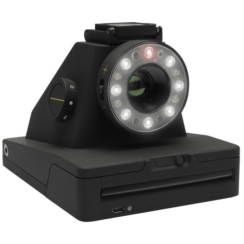 For imaging, the camera relies on an 82-109mm lens with a 5-zone autofocus system. Depending on the zone, the focal length will fluctuate slightly. Of course, the changes are slight and composition is made easy with a removable pop-up optical viewfinder on the top of the camera. One of the signatures of classic Polaroid images is the flash, and the I-1 brings it to modern times with an advanced ring flash that offers twelve LEDs to illuminate your subject. For tactile control, the I-1 has physical lighten/darken and flash on/off controls to help dial in the appropriate exposures. For advanced techniques, the camera offers Bluetooth LE 4.0 connectivity for connecting to a smartphone or tablet.