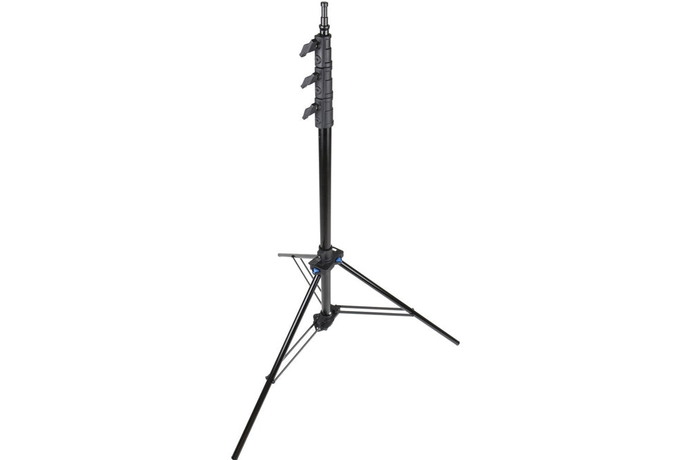 Kupo Click Stands are light weight aluminum kit stands perfect for the location photographer.. They collapse flat and attach to one another with a simple click for easy transportation and storage. With four-way interconnectivity, these can be configured in dozens of different ways to save space to best suit your needs. The center column is easily removed from the base to be used as a hand held boom. This stand has a minimum operating height of 50" and has a closed length of 42.1".