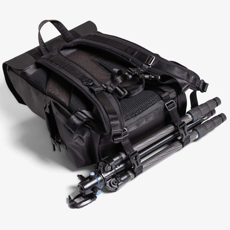 - Sturdy nylon straps to secure most tripods along with added retention buckle