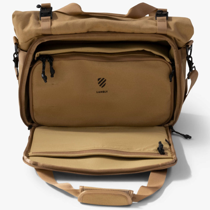 The upper compartment, accessed via either the front zip or the roll top closure is perfect for every day items such as clothing, books, etc. Unzipping the internal divider transforms the Weekender Flight Bag from a camera bag to an everyday bag - perfect for college, work or those around town missions without your camera.