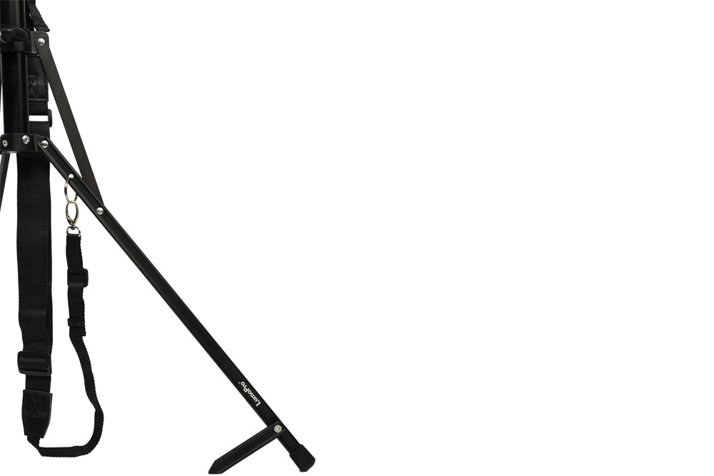 The LP605S 7.5' Compact Light Stand with Carrying Strap builds on the success of the LP605 with the addition of a carrying strap for easier portability. The adjustable strap allows photographers to carry the stand over their shoulder or cross-body, similar to a sling. The strap on the LP605S is secured to the stand via a hook-and-loop system belt near the top of the stand and a durable, metal carabiner near the base. If desired, the strap can also be easily detached when not in use.