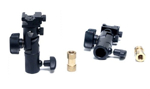 The LP633 Umbrella Swivel will mount any standard shoe-mount flash to a light stand or other accessory. With a fully metal body and compact design, the LP633 is durable enough for heavy use without adding lots of weight to your camera bag. Primarily designed for use on a light stand, the swivel can be used with or without an umbrella or other shafted light modifier. When using an umbrella, the 10 degree-tilted umbrella shaft hole and geared-tooth locking mechanism in the main joint of the swivel ensures a secure, no-slip fit at any angle. The LP633 fits on any standard 5/8", 1/4"-20 or 3/8" threaded male accessory. Removable 3/8" and 1/4"-20 female threaded brass inserts are included.