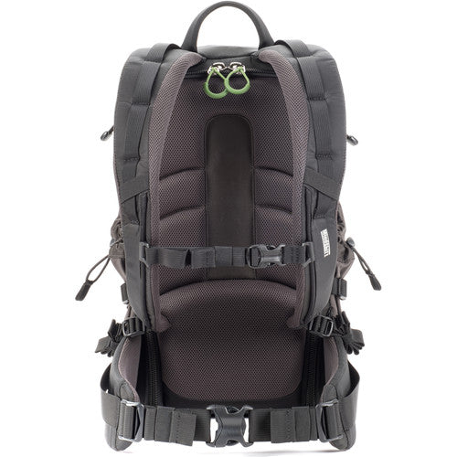 - Comfortable padded waist belt for all day comfort on the trail with webbing rail for additional MindShift accessories