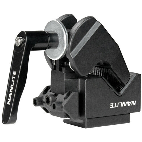 You can attach the power adapter box of a Forza 500, 300B, 300, or 200 to a light stand or other surface quickly, easily, and securely with the Nanlite Stand Clamp for Forza Power Adapters. This is a compact yet durably built accessory that features an elongated, one-sided handle that gives you more leverage, making it easier to tighten and loosen. Plus, the handle is racheted, which means if it's positioned too close to an object — making it difficult to get ahold of, you can pull the handle outward to disengage, then rotate it to your desired location, and set it back in so you can turn it with ease. The clamp features a dedicated connection point that was specifically designed to hold your Nanlite Forza power adapter box confidently in place