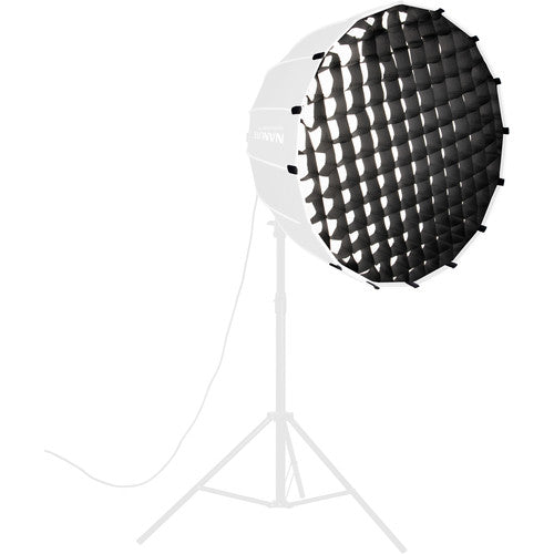 The Fabric Grid for Para 90 Softbox from NanLite mounts to the front of the softbox to minimize light spill and add directionality by tightening the beam angle. Grids are great for selectively lighting subjects without losing the soft quality of light produced by the softbox. This fabric grid swiftly and easily attaches to the softbox via touch fasteners and folds down flat for storage and transport.