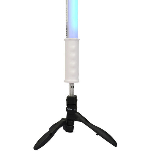 The Nanlite Foldable Floor Stand is specifically for the PavoTube T8-7X LED Tube Light. Instead of clips it features a 1/4"-20 mount on a spacer that provides room at the bottom for a power cable and the Nanlite USB-C to DMX cable (sold separately). You can now run the T8-7X nonstop with full DMX control in the standing position.