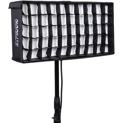 In The Box | Nanlite Folding Softbox with Egg Crate for PavoSlim 120B/C LED Panel, 1.5-Stop Diffusion Panel, 2.5-Stop Diffusion Panel, Egg Crate Grid, Carrying Bag, Limited 2-Year Manufacturer Warranty, Registration Extension: 1-Year |