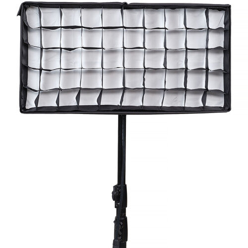 This Folding Softbox with Egg Crate for PavoSlim 120B or 120C LED panel from Nanlite is a remarkably easy and quick light modifier to set up. Simply unfold the softbox panels and attach the assembly to the hook-and-loop fasteners around the sides of the PavoSlim panel. The included diffusers and grid attach just as easily, and the entire kit breaks down quickly for storage and transport. It retains the thin profile and lightweight characteristics of the PavoSlim light panel while delivering soft and accurate light. The included 1.5-stop and 2.5-stop diffusion panels soften light output for reduced contrast. The egg crate grid provides directional control and prevents spill, making it easier to highlight a subject or area. This softbox is the same modifier included with the PavoSlim 120B/C LED light panel.