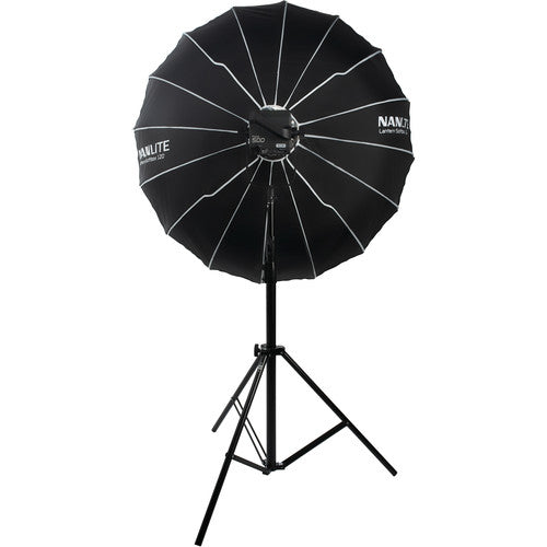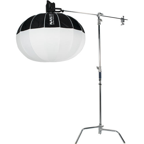 Ideal for hanging overhead on a boom, the 47" Lantern Softbox from NanLite is a near omni-directional light source that spreads light over a 270° area to increase ambient light or to provide the type of overhead lighting you'd see at a table in a restaurant or club. The Lantern comes with a Bowens speed ring that besides NanLite, fits the many flash heads that use this popular mount. The Lantern comes with a two-piece skirt to allow blocking some of the pervasive light as needed.