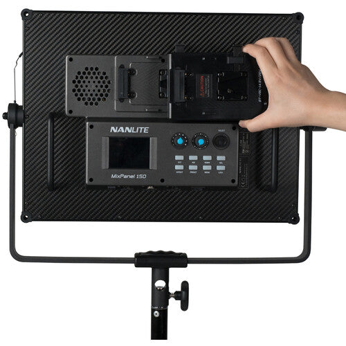 The 14.8V / 26V V-Mount Battery Adapter from Nanlite is a handy piece of gear that converts 14.4 / 14.8V V-Mount batteries to 26V for equipment that runs on that voltage. For example, MixPanel 150 will run for 40 minutes at full power with a converted battery.