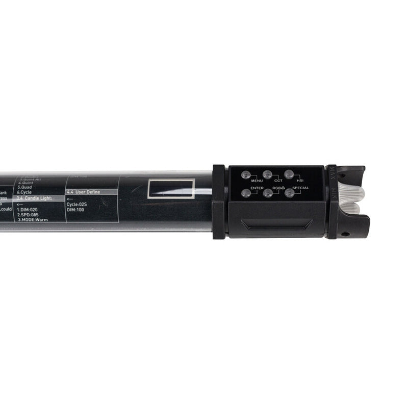 With six pre-programmed special effects in a simple-to-master menu system, this Nanlite RGB light tube makes it easy to imitate lighting scenarios that can otherwise be tricky to recreate. At the touch of a button, you can simulate the lighting effects of an emergency services vehicle (cop car), flame (candlelight), lightning storm, an SOS signal, and two different types of continuous flicker/flash. Each of the special effects has many different settings to help you refine it and create precisely the effect you need, as well as an LCD panel showing you exactly what settings you're using, making it easy to fine tune and then recreate them in future.