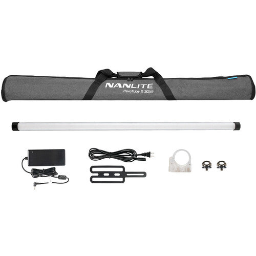 In The Box | Nanlite PavoTube II 30XR RGB LED Pixel Tube Light (4', 8-Light Kit), 8 x Nanlite PavoTube II 30XR RGB LED Pixel Tube Light (4'), 8 x Floor Stand, 16 x Mounting Clip, 16 x 1/4"-20 Eyebolt, 8 x Power Adapter Rubber Strap, 8 x Power Adapter, 8 x Power Cable (9.8'), 8-in-1 Power and Charging Cable, 8-in-1 Power Adapter Holder, Hard Case, Limited 2-Year Manufacturer Warranty, Registration Extension: 1-Year |