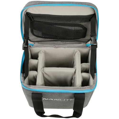 The Nanlite Carrying Case for PavoTube II 6C is fully padded to hold and protect up to six compact LED tube lights. It has two spacious sections in the center to hold your mounts, coupler adapters, modifiers, charging cables and other essential accessories. It comes with a removable shoulder strap stored in an interior zippered mesh pocket. The lid straps are adjustable to allow a peek at the contents while the case remains upright.