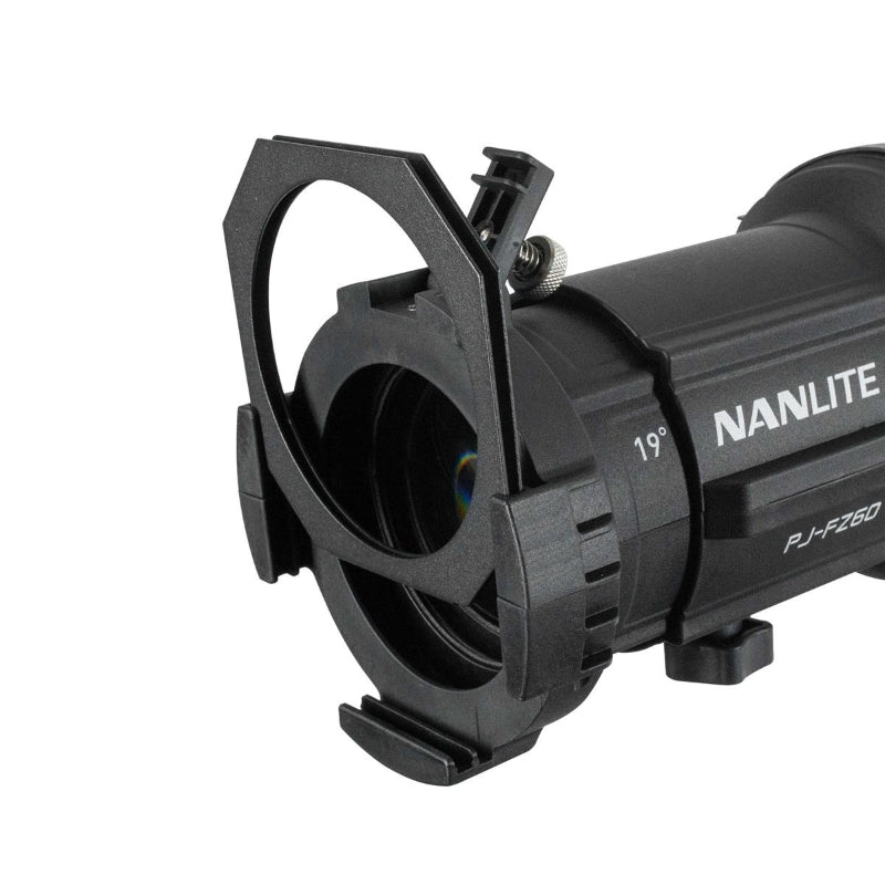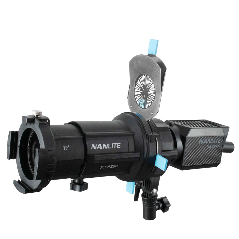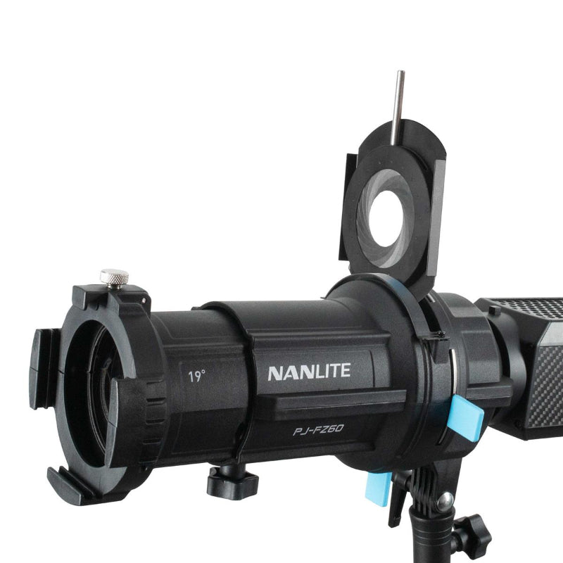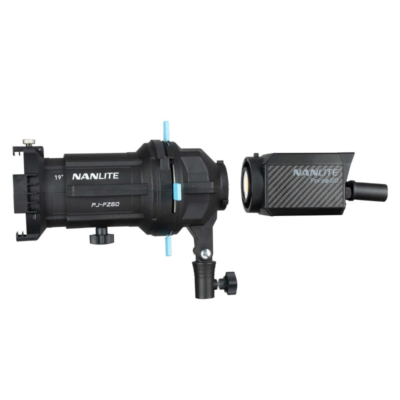 Achieve complex and bold lighting effects with Nanlite's complete optical system for the Forza 60 range. The Nanlite Forza 60/60B Projector Mount with 19° lens increases the light output 17 times while still maintaining a smooth, even beam with minimal fall-off.