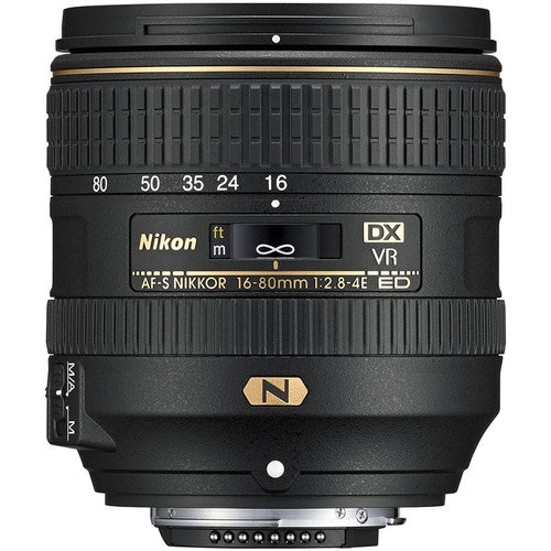 Take full advantage of the size benefits of your DX format camera without compromising on image quality with the compact Nikon's AF-S DX NIKKOR 16-80mm f/2.8-4E ED VR Lens. Featuring an equivalent focal length of 24-120mm, this lens will cover a wide range of subject matter, from wide landscapes to distant sports. Also, the maximum aperture range is quite fast, spanning from f/2.8 at 18mm to f/4 at 80mm. Ensuring maximum image quality, the optical design contains extra-low dispersion glass and aspherical elements to minimize aberrations and utilizes Nano Crystal & Super Integrated Coatings to reduce ghosting and lens flare. On top of this, a protective fluorine coating is present on the front and rear elements for quickly cleaning off water and dirt.