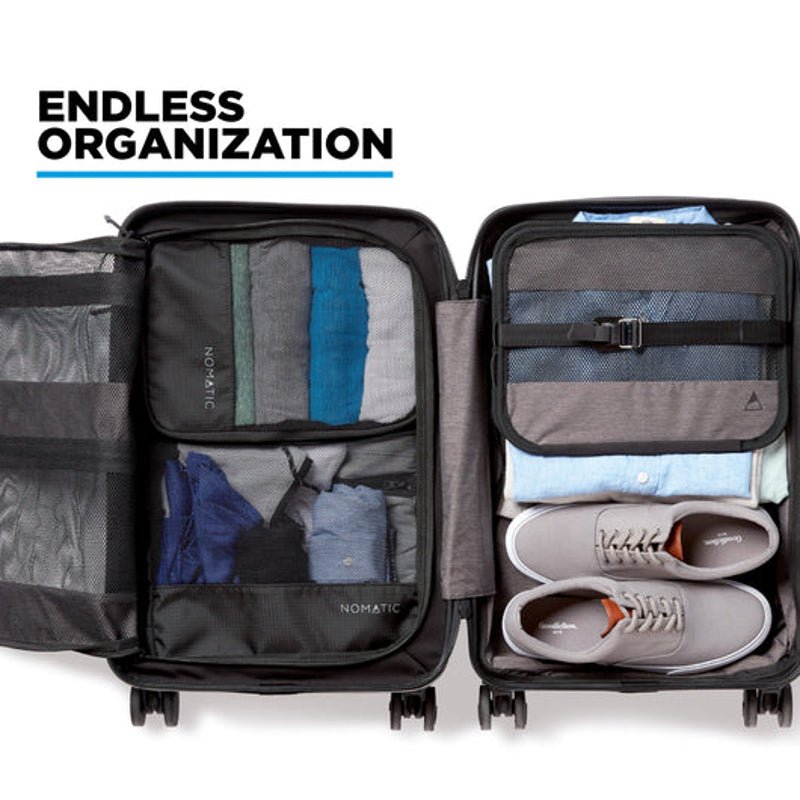 In The Box | Nomatic Carry-On Classic 22" Spinning Suitcase Folding Compression Panel Limited Lifetime Warranty |